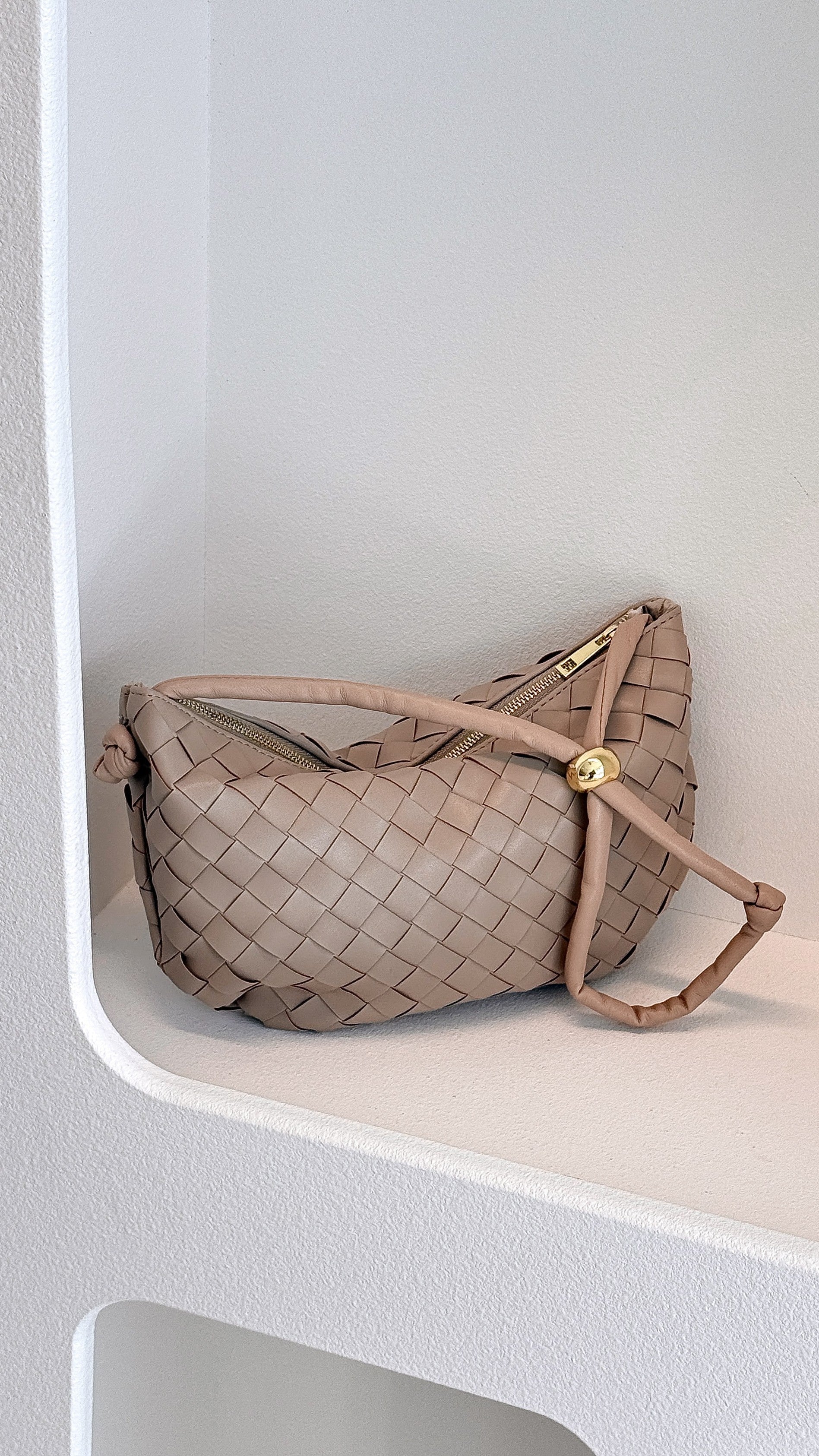 The Kacey Handle Bag by Billini is a sophisticated woven bag, available exclusively to Billini.