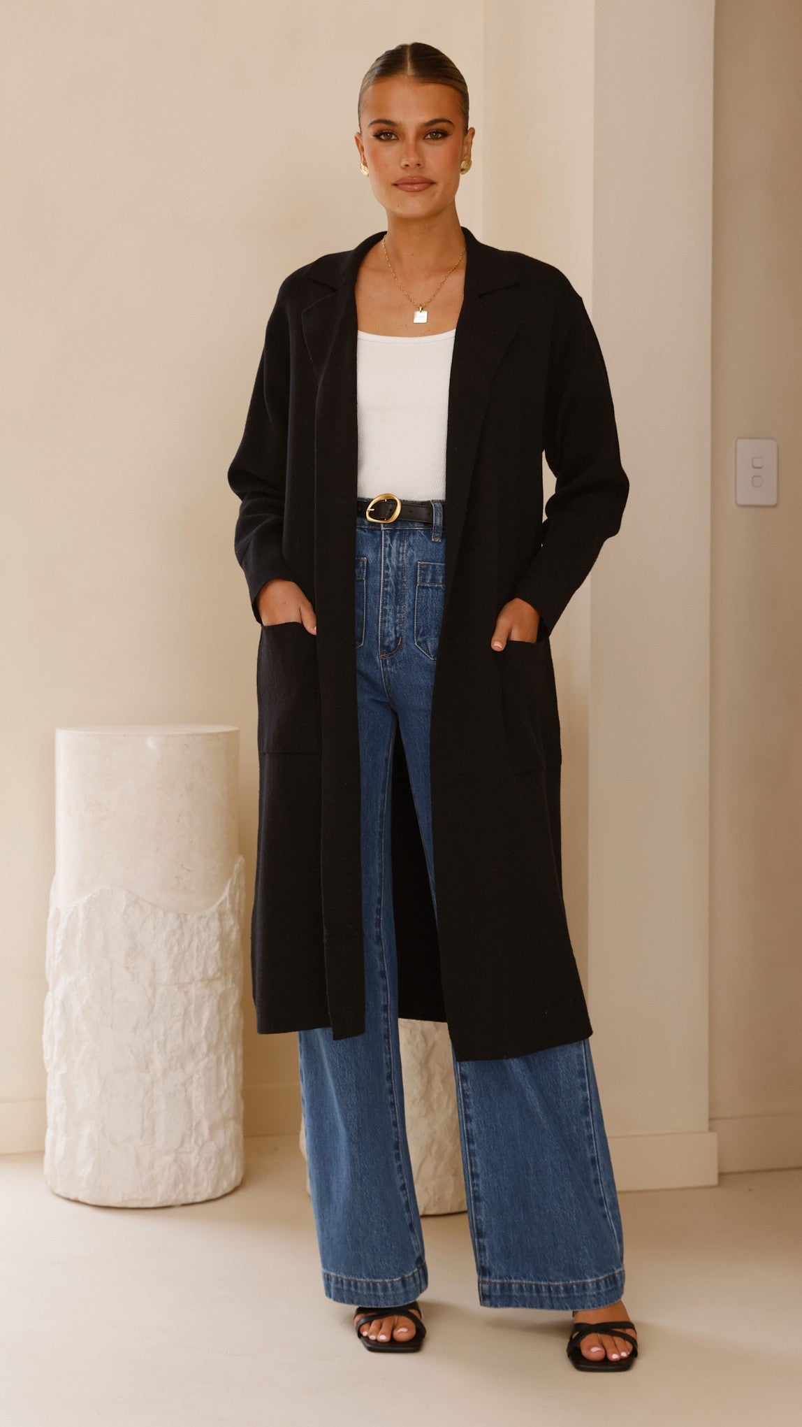 - Longline cardigan style