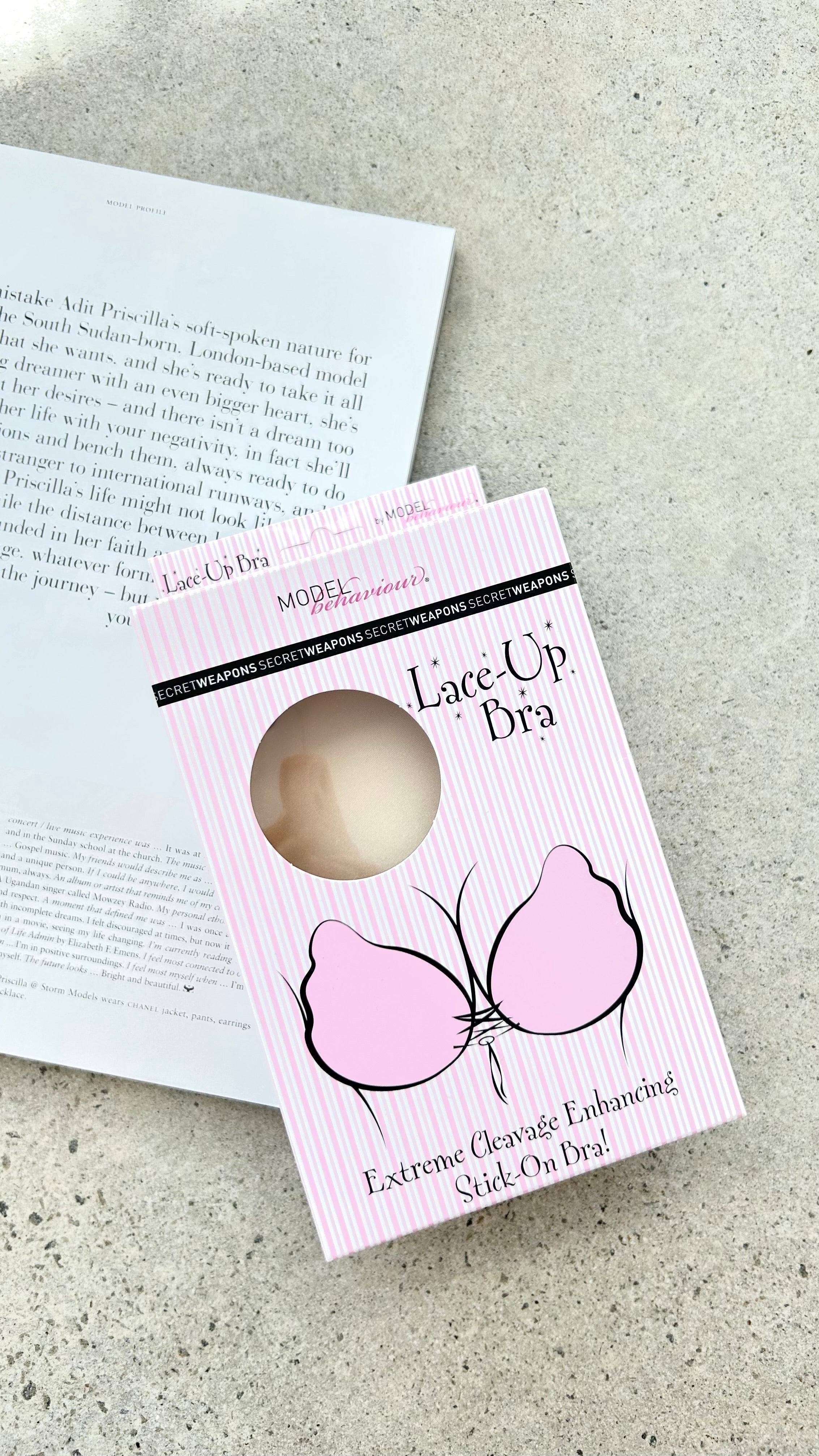 Made with medical grade adhesive, the Lace Up Bra is lightly padded for the ultimate lift, shape and cleavage.